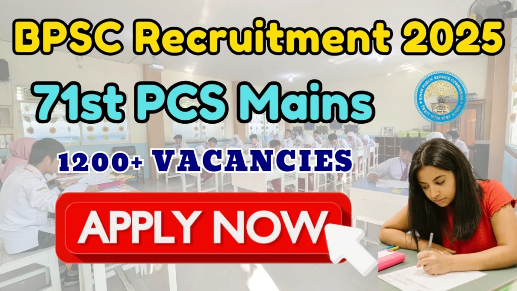 The Bihar Public Service Commission (BPSC) has released the official notification for the 71st Combined Competitive Examination (CCE) Mains 2025, announcing 1298 vacancies in various administrative, police, and revenue departments. Candidates who successfully qualified the Prelims exam can now apply online for the Mains from 03 December 2025 to 31 December 2025.