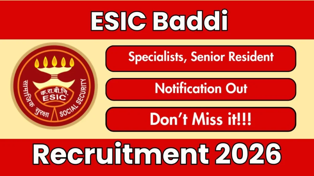Employees’ State Insurance Corporation (ESIC) Model Hospital, Baddi, located in Himachal Pradesh, has issued Advertisement No. 01/2026 inviting qualified medical professionals to participate in a walk-in interview for engagement on a contract basis. The recruitment is open for Super Specialists, Specialists, and Senior Residents across various clinical departments. These appointments are initially for a one-year term, which may be extended up to three years based on institutional requirements, administrative approval, and individual performance. This hiring initiative aims to enhance specialized medical services at ESIC Hospital Baddi and provides an excellent short-term government employment opportunity for experienced doctors.