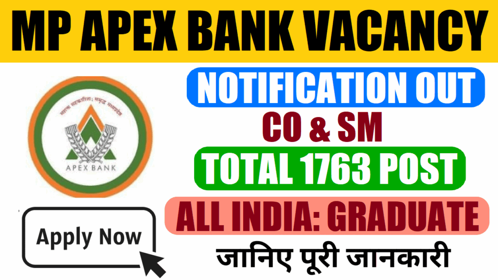 Madhya Pradesh Rajya Sahakari Bank Maryadit (Apex Bank), Bhopal has released a large-scale recruitment notification for 1763 vacancies across 38 District Central Cooperative Banks (DCCBs) in Madhya Pradesh. This recruitment drive covers the posts of Computer Operator (Regular), Computer Operator (Sambida/Contractual), and Society Manager. The notification offers an excellent opportunity for graduates with computer qualifications who are seeking a stable banking career in the cooperative sector. Eligible Indian citizens with Madhya Pradesh domicile can apply through the online mode within the prescribed dates. Below is a detailed, SEO-optimized and easy-to-understand explanation of all important aspects of this recruitment.